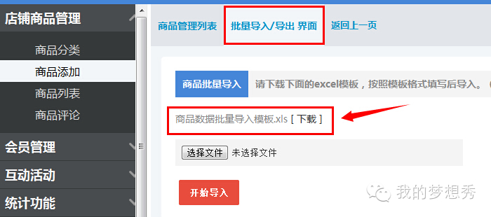 2.下载“商品数据批量导入模板”,填写好商品的相关信息。